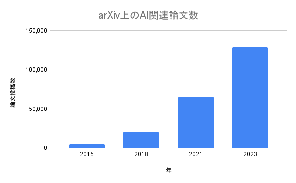 AIの進化を支えているのは、世界中の研究者たちです。彼らの研究成果である「論文」の数も、AIの進化速度を示す重要な指標となります。