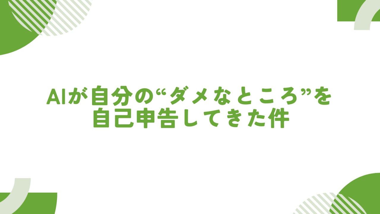 今回は、AI自身が語った「自分の弱点」とその理由、