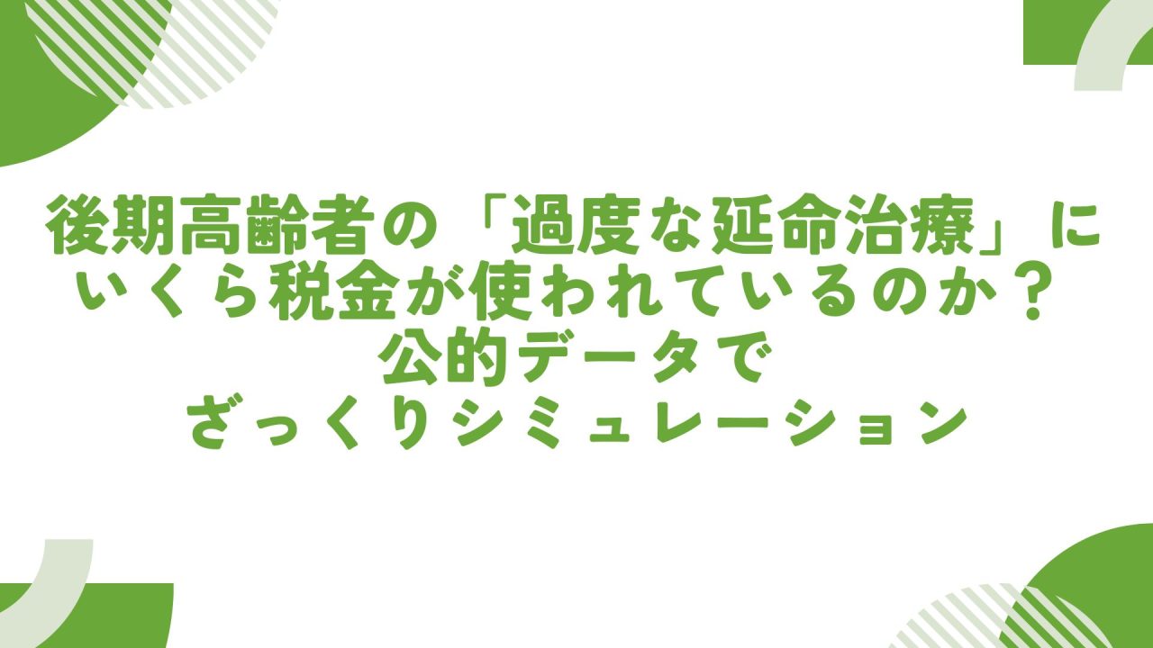 では、こうした“無益治療”にどれだけの公費(=私たちの税金)が投じられているのでしょうか。最新統計に手を掛け、シンプルな“試算シート”を作ってみました。