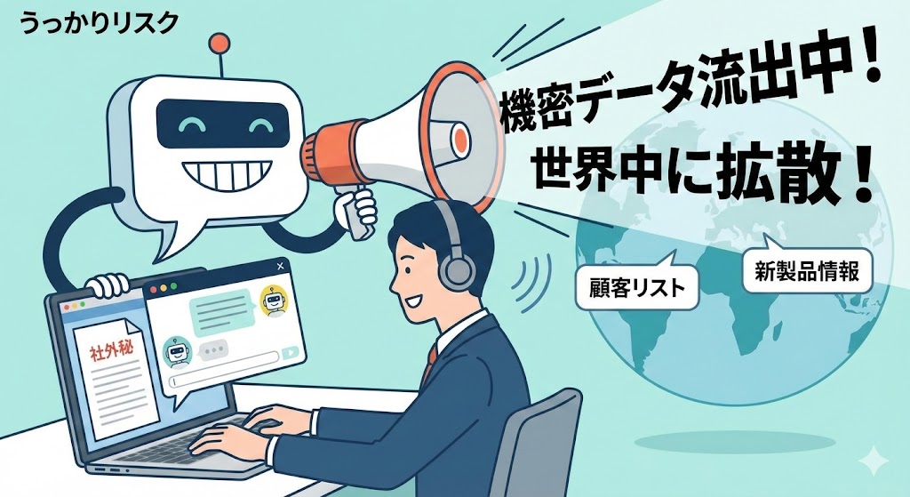 イメージしてください。あなたが会社の会議室(ローカル環境)で話しているつもりでも、ChatGPTの入力欄に打ち込むという行為は、インターネット上の「巨大な公開広場」で、拡声器を使ってその内容を話しているのに近い状態になり得るのです。